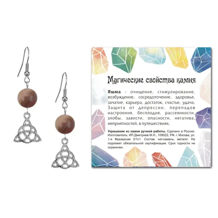 Серьги Трикветр (защита и гармония), Яшма коричневая SEB07-24-0069