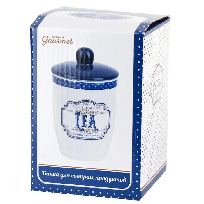 Для ухода за банкой следует использовать мягкие моющие средства. Для создания гармоничного кухонного пространства её можно комбинировать с другими предметами серии Gourmet. Дизайн в бело-синих тонах подходит для интерьеров в стиле прованс.