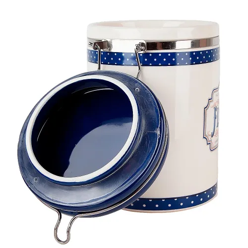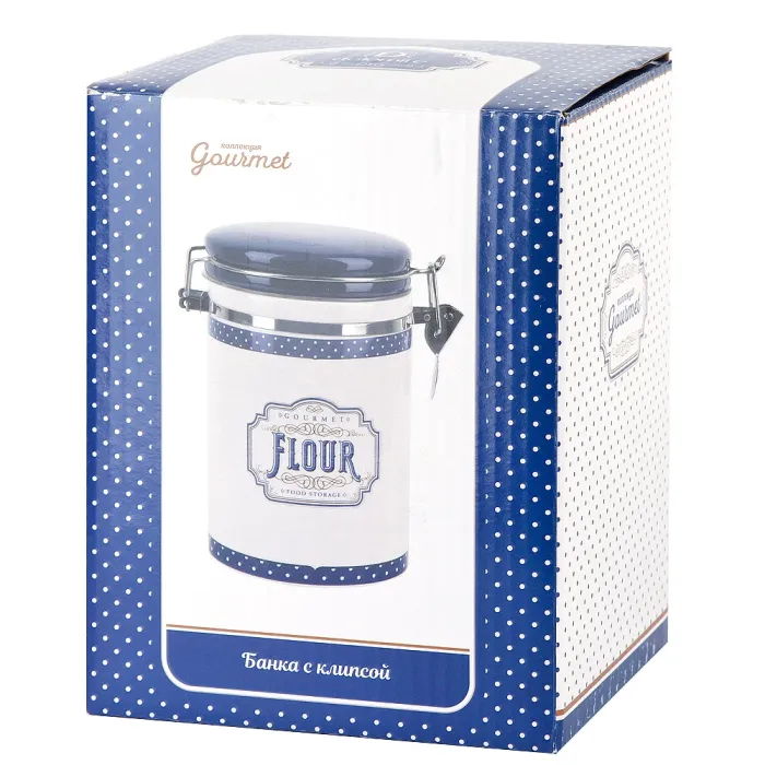 Банка для сыпучих продуктов Gourmet предназначена для хранения сыпучих продуктов на кухне. Изделие изготовлено из керамики брендом Dolomite и входит в коллекцию Gourmet, оформленную в бело-синих тонах.