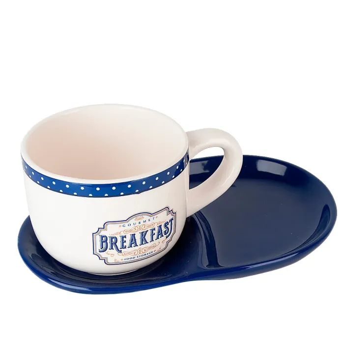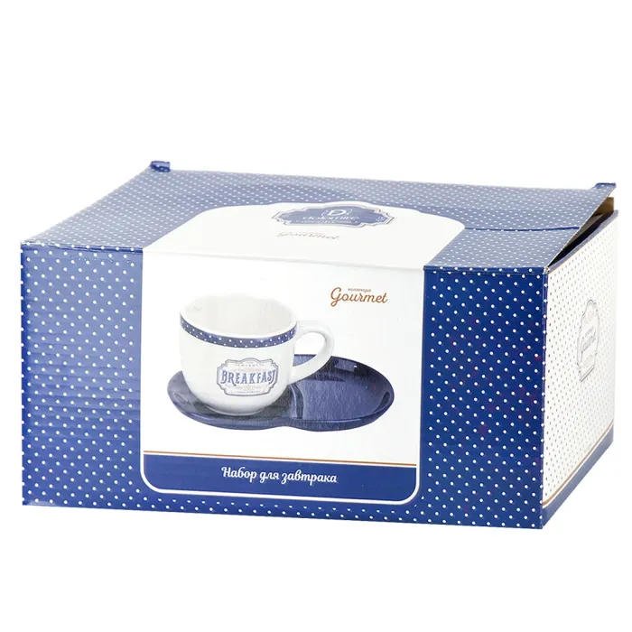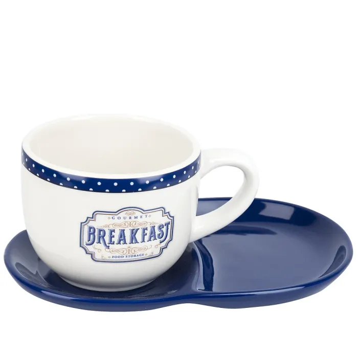 Набор для завтрака из коллекции Gourmet бренда Dolomite предназначен для подачи горячих напитков. Комплект включает чашку и блюдце, выполненные из керамики в стиле прованс с бело-синим оформлением.
