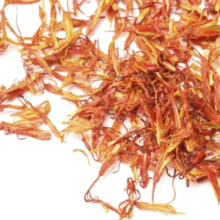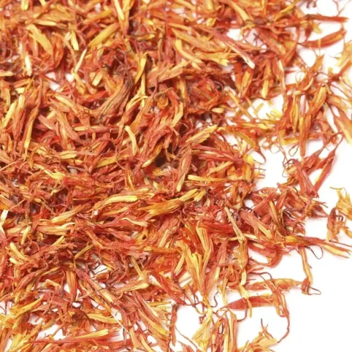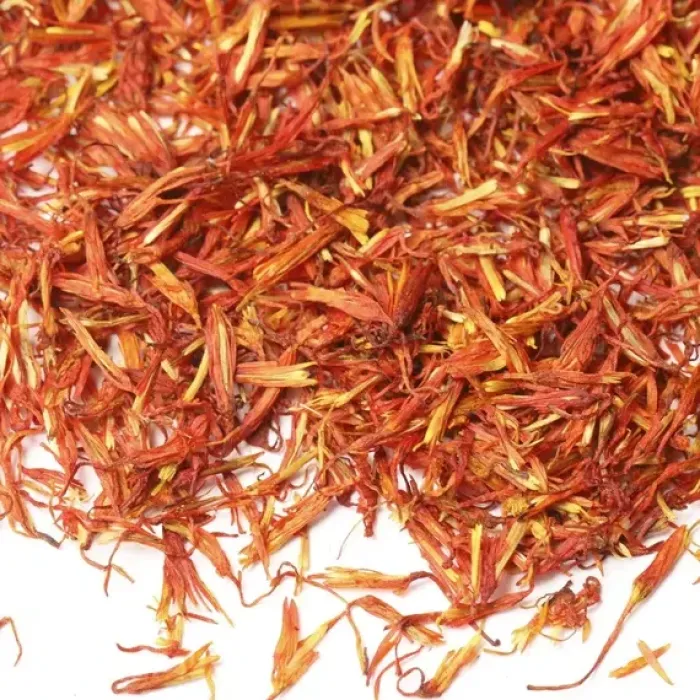 Яркие красные лепестки сафлоры дарят напитку лёгкий пряный аромат и мягкий, утончённый вкус с едва уловимой сладостью. Этот цветочный настой служит прекрасной основой для травяных купажей и используется в кулинарии для придания цвета и аромата.