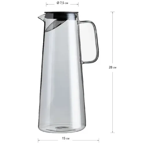 Стеклянный заварочный кувшин с крышкой-ситом предназначен для приготовления чая и настаивания травяных напитков. Основная функция — фильтрация заварки через встроенное сито в крышке. Ключевые преимущества включают использование термостойкого стекла и наличие удобной крышки с фильтром.