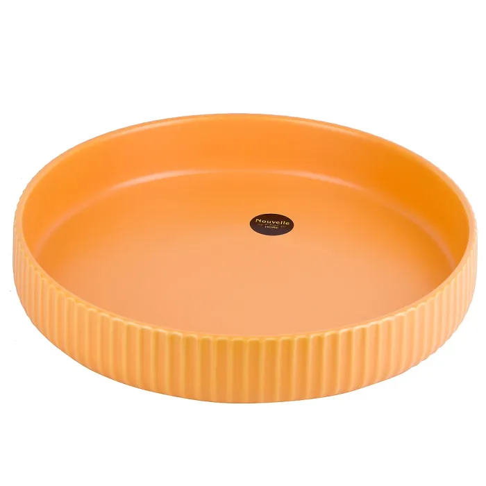 Блюдо изготовлено из фарфора, что обеспечивает прочность и устойчивость к температурным перепадам. Гладкая поверхность без декоративного рисунка облегчает уход. Круглая форма с высотой бортиков 4,5 см обеспечивает удобную подачу и вместительность.