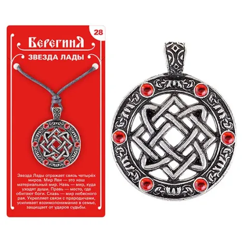 Амулет защитный №28 «Звезда Лады» — это уникальный оберег, который не только украшает, но и защищает. Он символизирует гармонию и взаимопонимание, укрепляя связи между людьми и оберегая от неблагоприятных обстоятельств. Этот амулет несёт в себе глубокий культурный смысл, отражая связь четырёх миров: Яви (материального), Нави (мира душ), Прави (обитания богов) и Слави (небесного рая).