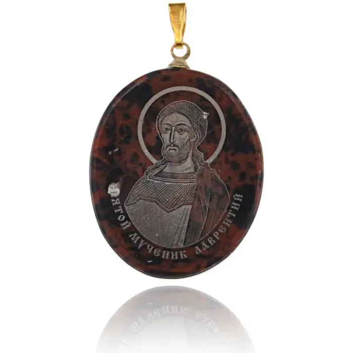 Именная иконка из обсидиана 27x22мм Лаврентий IK003-074