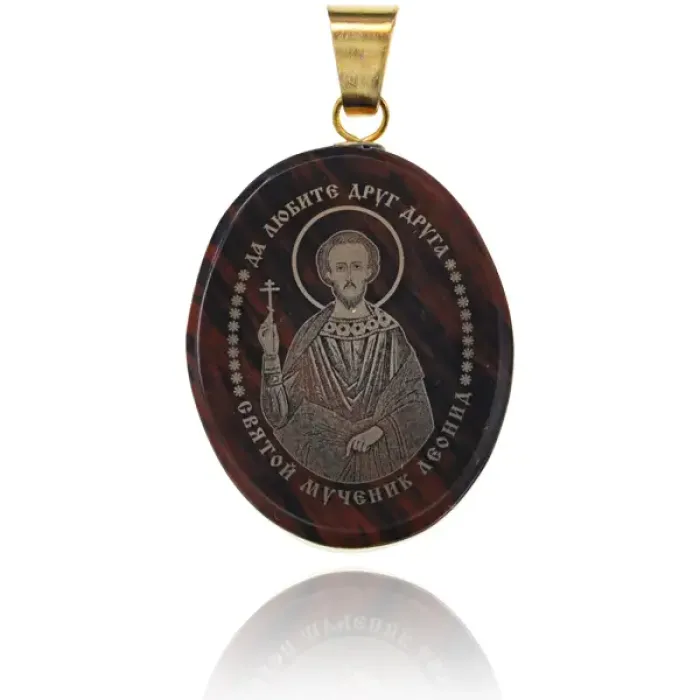 Именная иконка из обсидиана 27x22мм Леонид IK003-077
