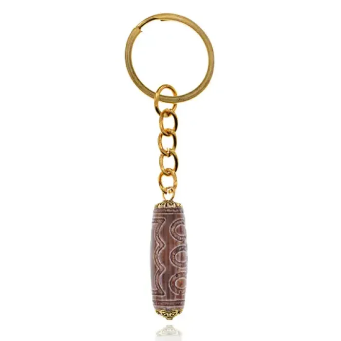 Брелок с бусиной Дзи из натурального агата с пятиглазым узором.