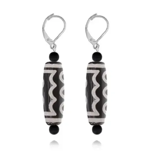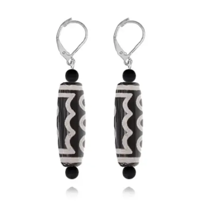 Серьги с бусиной Дзи. Изготовлены вручную из натурального агата.