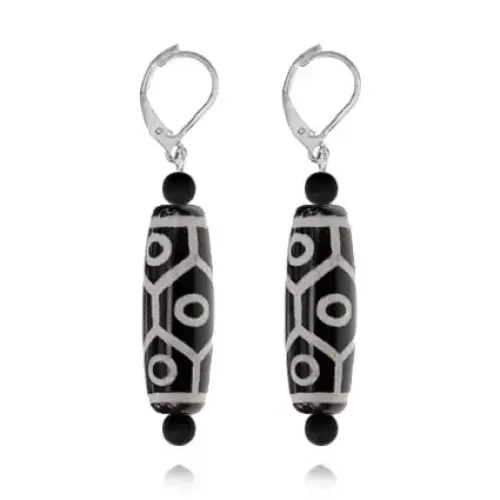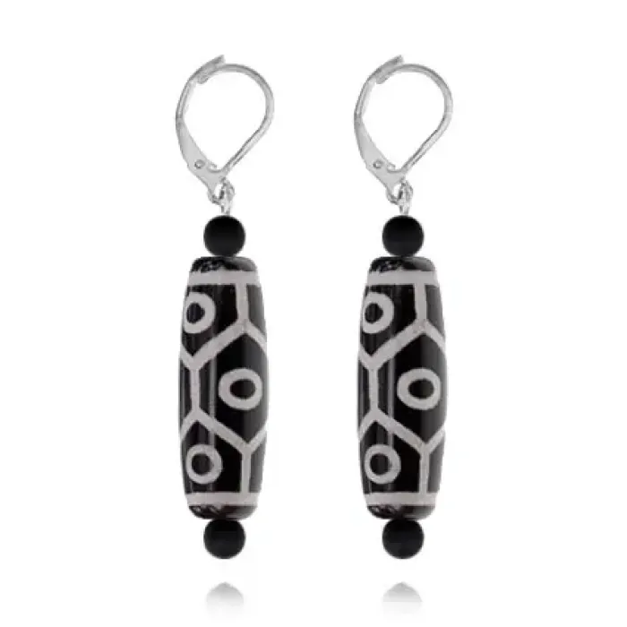 Серьги с бусинами Дзи. Изготовлены из натурального агата, имеют дизайн с тибетскими бусинами.