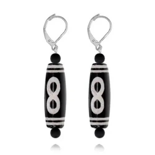 Серьги с бусинами Дзи Бесконечность DZSE-007