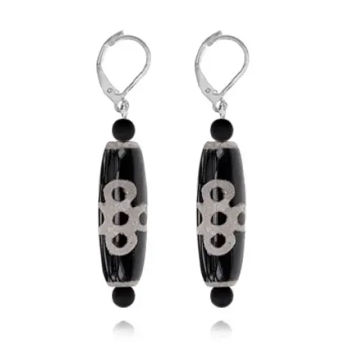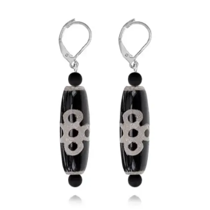 Серьги с бусинами Дзи Гаруда DZSE-008