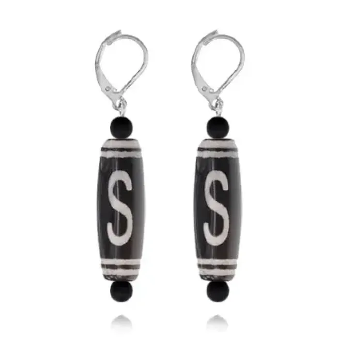 Серьги с бусинами Дзи Денежный крючок DZSE-010