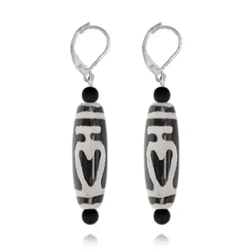 Серьги с бусинами Дзи Бумпа DZSE-013