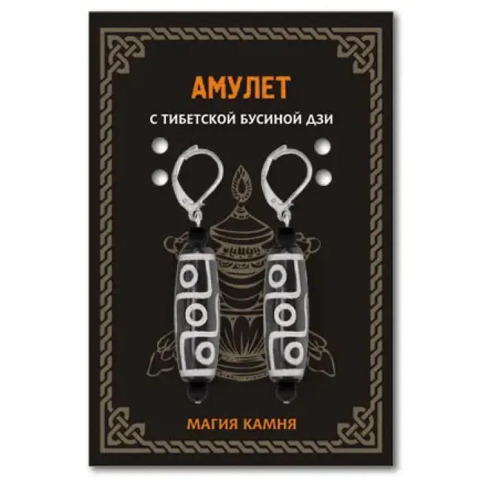 Серьги с бусиной Дзи. Изготовлены из натурального агата, декорированы девятиглазой бусиной.