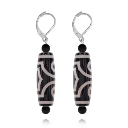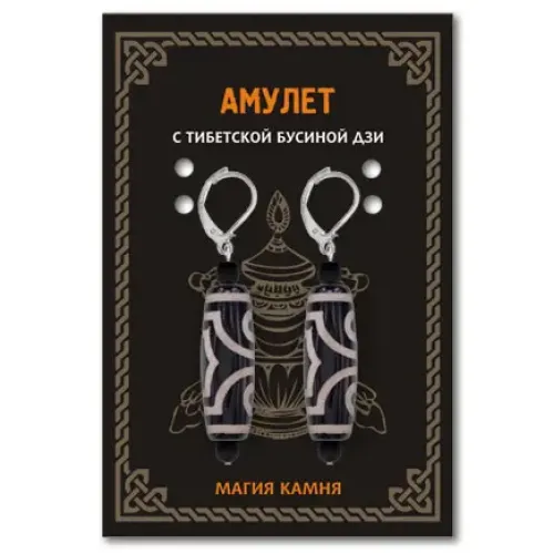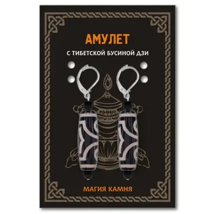 Серьги с бусиной Дзи. Изготовлены из агата, имеют конструкцию с подвеской.