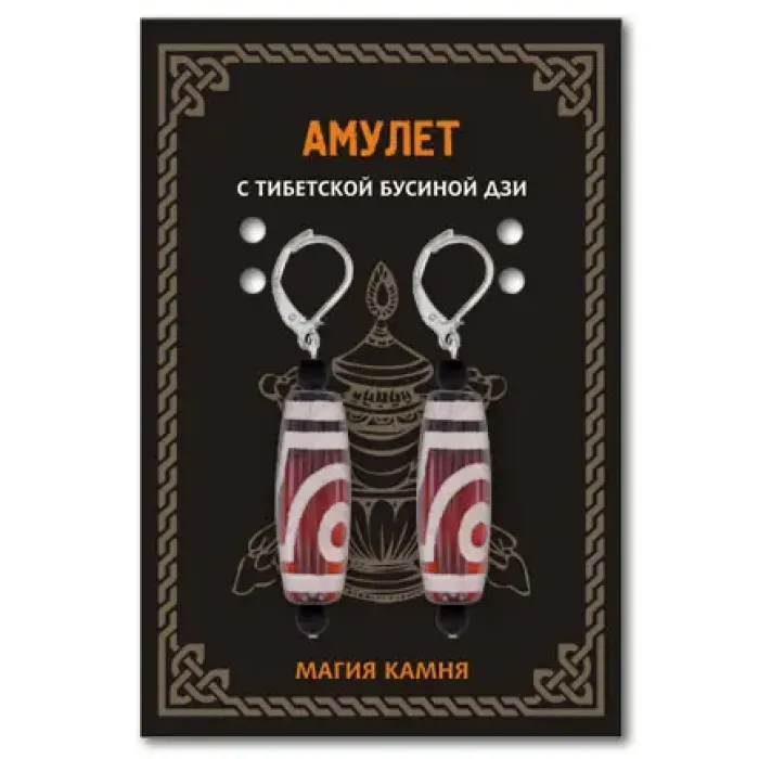 Серьги с бусинами Дзи. Изготовлены из натурального агата, комплектуются вкладышем с описанием.