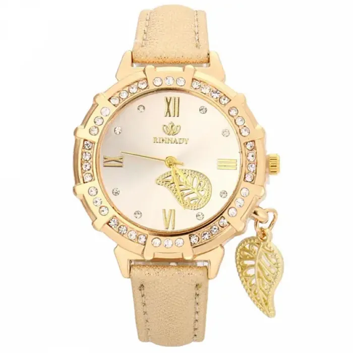 Наручные часы с кварцевым механизмом и бежевым ремешком в дизайне «Лист».