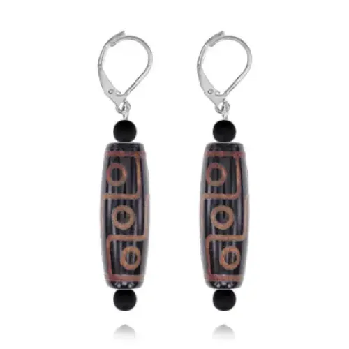 Серьги с 9-глазыми бусинами Дзи DZSE-029