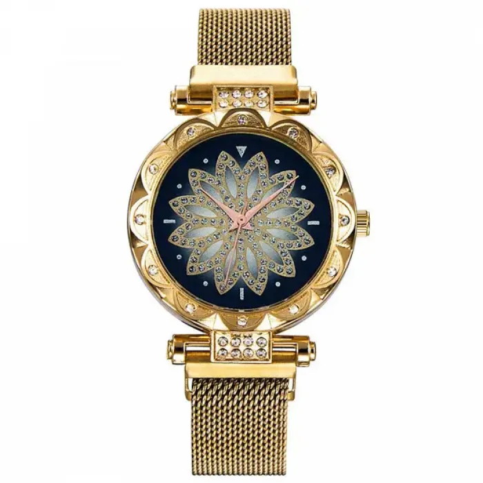 Наручные часы с циферблатом в стиле мандала, золотого цвета.
