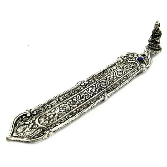 Подставка для благовоний Будда — стильный аксессуар, который привнесёт гармонию и спокойствие в любое пространство. Изготовленная из прочного металла, она станет идеальным дополнением для медитаций или создания уютной атмосферы в доме.