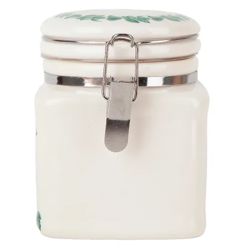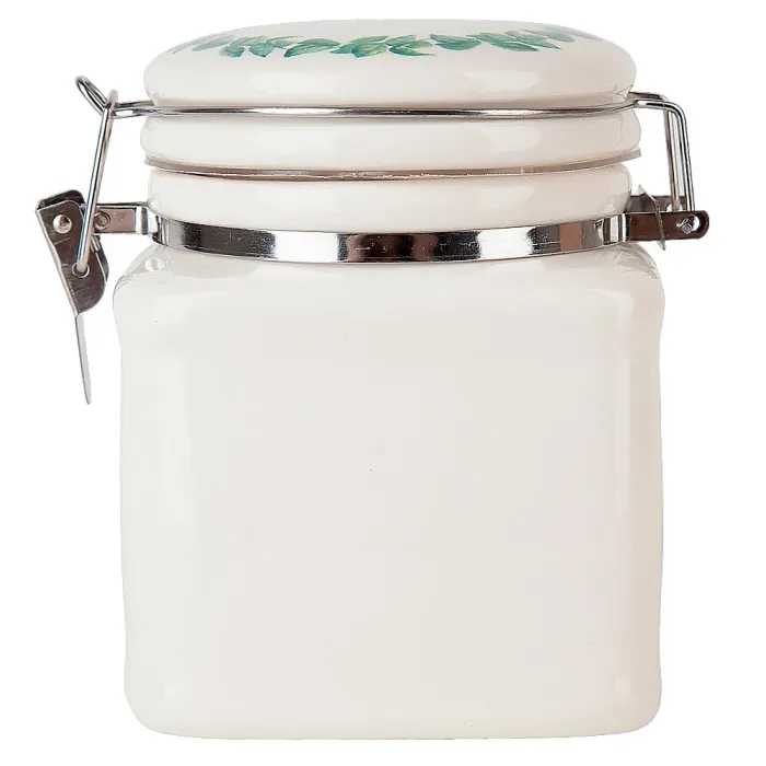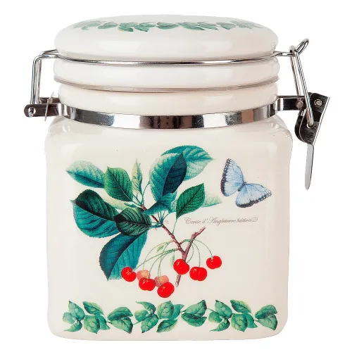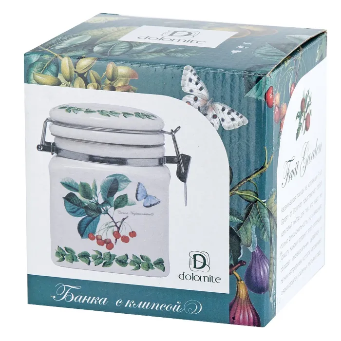 Керамическая банка для сыпучих продуктов Fruit Garden предназначена для хранения чая, кофе, специй и других ингредиентов. Изделие оснащено клипсой, обеспечивающей герметичность. Банка относится к коллекции Fruit Garden торговой марки Dolomite.
