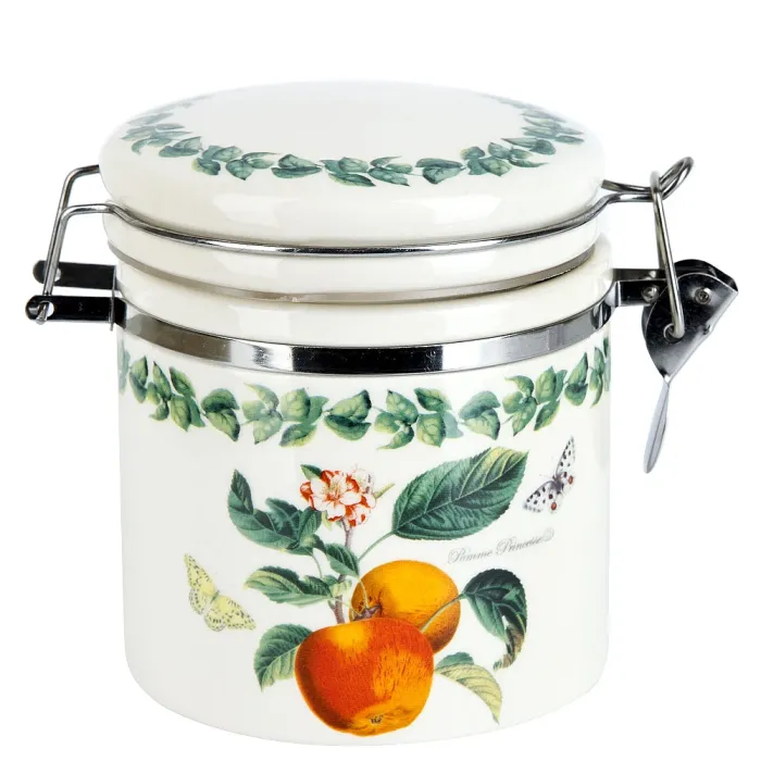 - Материал: керамика- Размеры: 15х10х12 см- Объём: 480 мл- Форма: круглая- Особенности: клипсовая крышка, декор Fruit Garden- Совместимость: не предназначена для использования в микроволновой печи (СВЧ)- Уход: ручная мойка, не рекомендуется мыть в посудомоечной машине (ПММ)