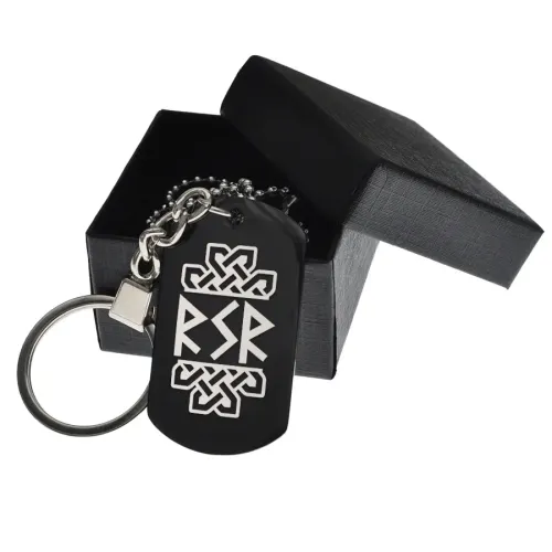 Размеры и комплектация: Размер 49х28 мм. В комплекте кольцо для ключей и регулируемая шариковая цепочка. Упаковка — подарочная коробка.