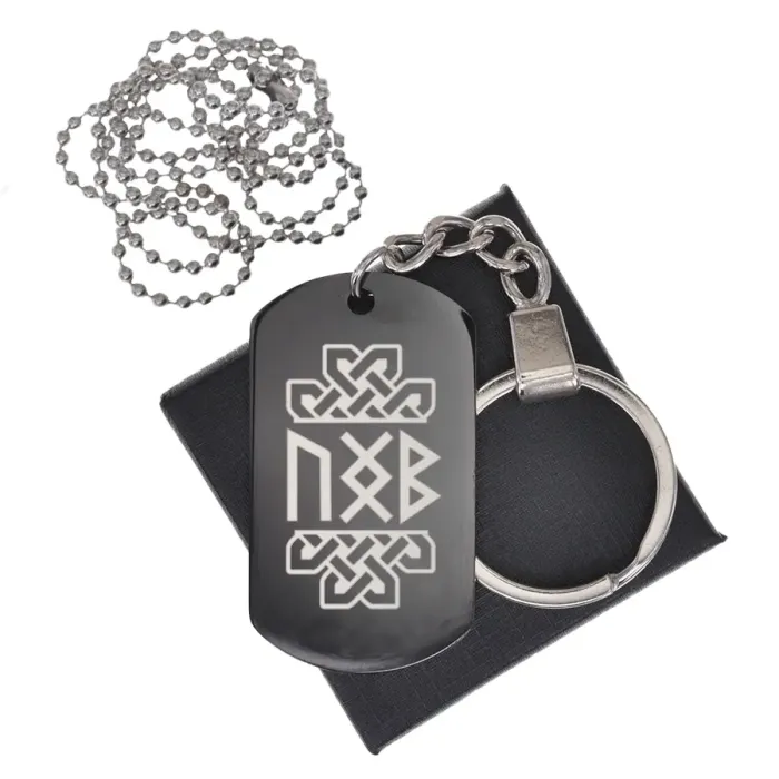 Размеры и комплектация: Размер 49х28 мм. В комплекте кольцо для ключей и регулируемая шариковая цепочка. Упаковка: подарочная коробка.