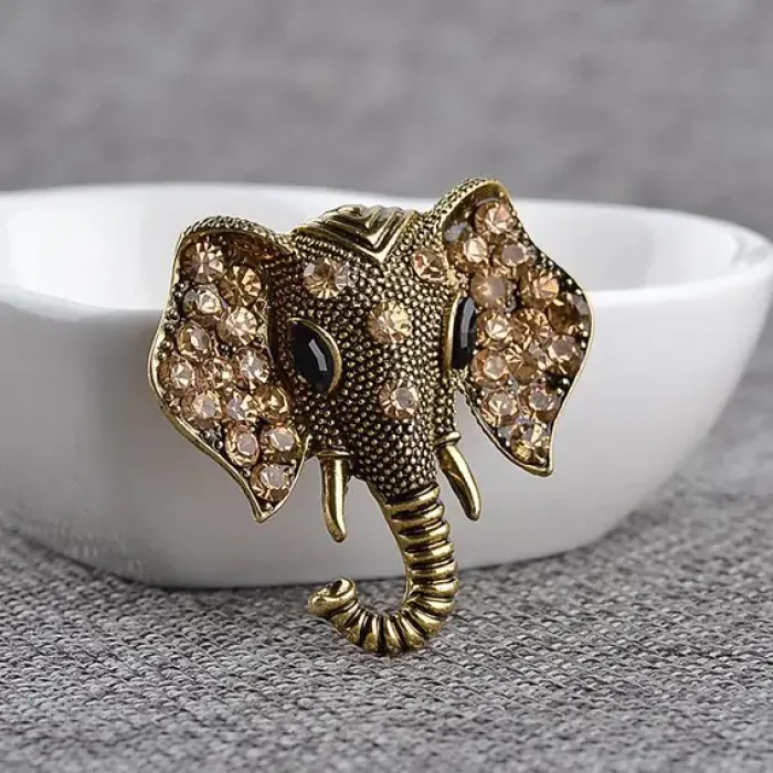 Эта изысканная брошь в виде головы слона станет ярким акцентом любого образа. Символизируя мудрость и силу, слон традиционно ценится в разных культурах как талисман удачи и защиты. Брошь украшена сверкающими стразами, которые придают ей особый шарм и элегантность.