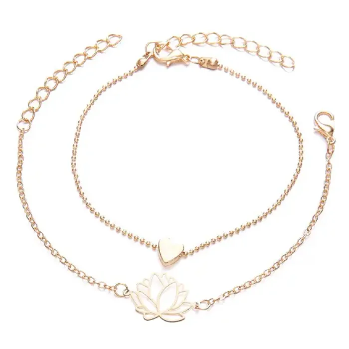 Набор браслетов - цепочек Лотос и сердце (2 шт.) BSN003