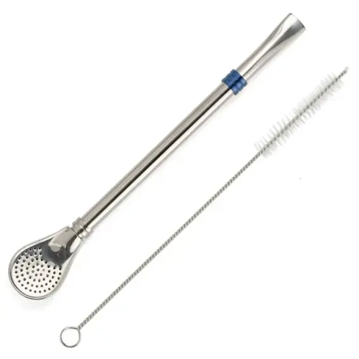Бомбилья разборная 19 см с щеточкой для чистки, металл, кольцо голубое