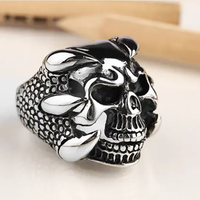 Кольцо из металлического сплава с дизайном в виде черепа.