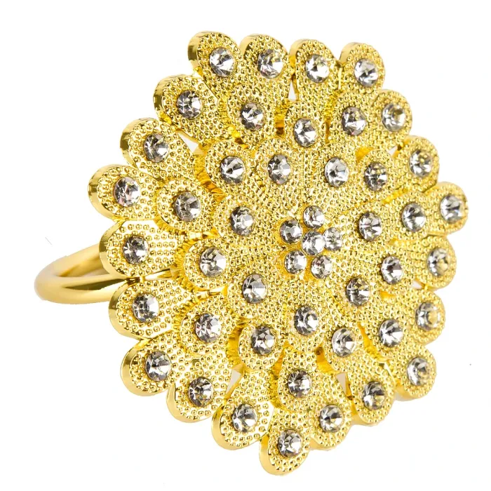 Кольцо для салфеток Blossom предназначено для фиксации тканевых или бумажных салфеток при сервировке стола. Изделие выполнено из металла и имеет фигурную форму с золотистым покрытием.