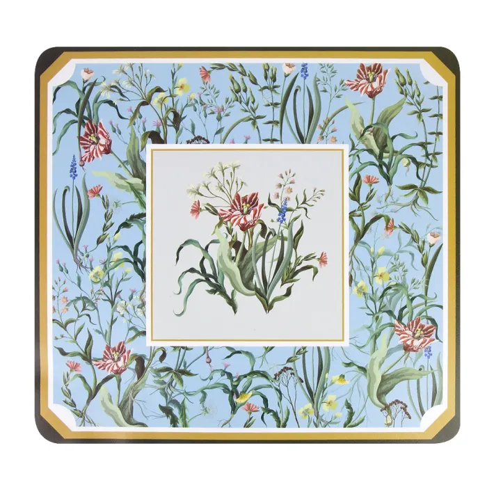 Плейсмат изготовлен из текстиля. Прямоугольная форма размером 30x28 см рассчитана на стандартное размещение приборов. Многоцветный дизайн с флористическим принтом нанесен на тканевую основу.