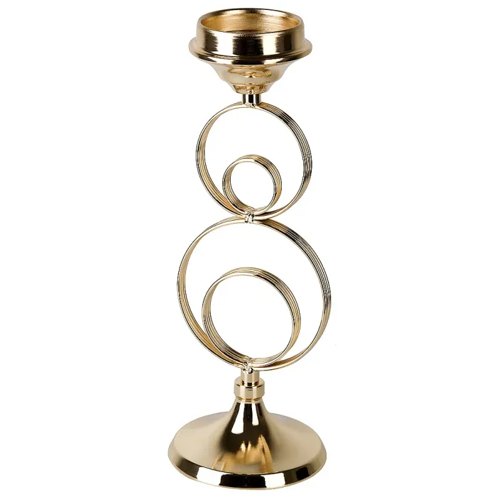 Декоративный подсвечник из металла предназначен для создания уютной атмосферы в интерьере. Элегантная фигурная форма и золотистый цвет делают его стильным элементом декора.