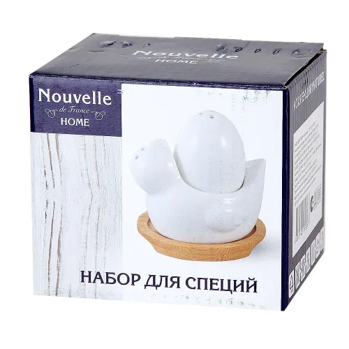 - Комплектация: солонка — 1 шт, перечница — 1 шт, подставка — 1 шт