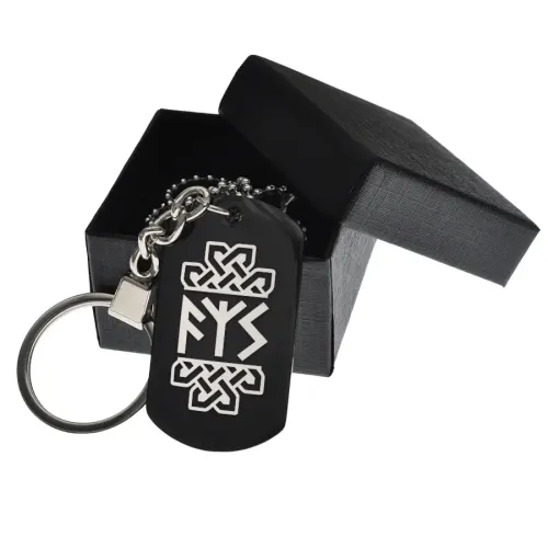 Размеры и комплектация: Размер 49х28 мм. В комплекте кольцо для ключей, шариковая цепочка с регулировкой длины, подарочная коробка.