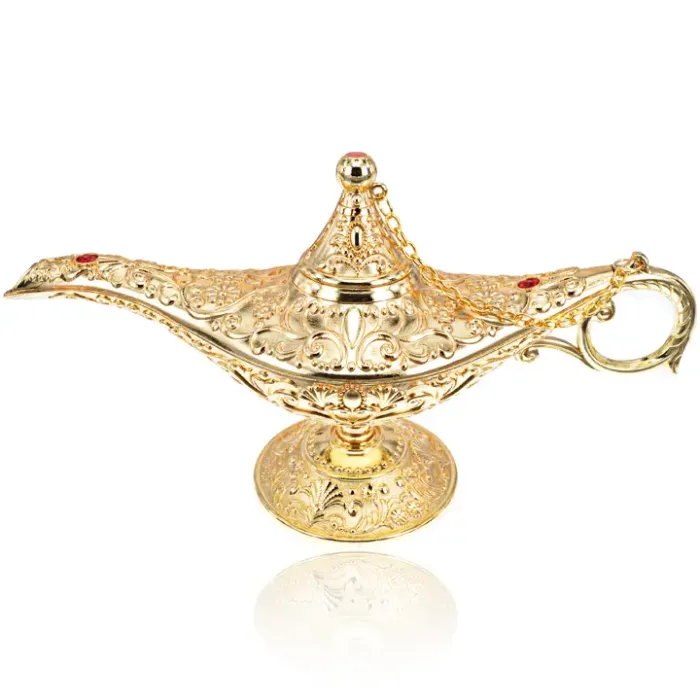 Лампа Аладдина — это не просто сувенир, а символ восточной магии и загадки. Она станет прекрасным украшением интерьера и оригинальным подарком для любителей восточной культуры. Изготовленная из металла с покрытием под золото, лампа обладает элегантным блеском и привлекательным дизайном.