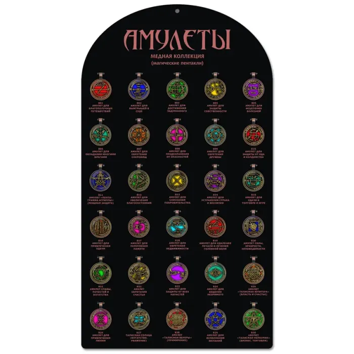 Стенд с 30 амулетами Медной коллекции - 1 (с ALE801 по ALE830) станет идеальным решением для демонстрации и продажи. Изготовленный из мягкого пластика ПВХ, он обеспечивает долговечность и привлекательный внешний вид. В комплект входит самосборная картонная подставка для установки на горизонтальную поверхность, а также описания амулетов и инструкция по эксплуатации. Размер стенда составляет 25х45 см, что делает его компактным и удобным для размещения в торговом пространстве.