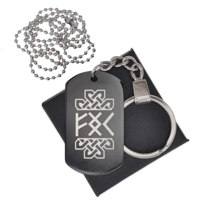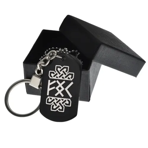 Размеры и комплектация: Размер 49х28 мм. В комплекте кольцо для ключей и шариковая цепочка с регулировкой длины. Упаковка — подарочная коробка.