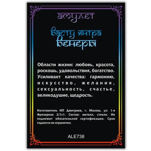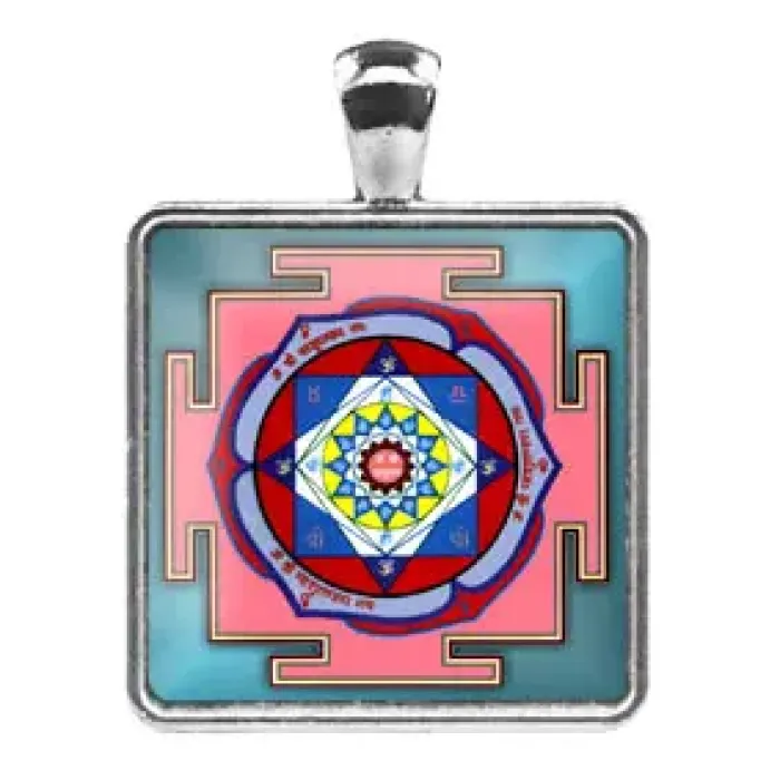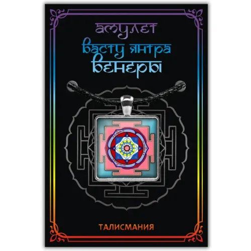 Амулет Васту Янтра Венеры — это не просто украшение, а символ гармонии и благополучия. Этот квадратный амулет с изображением под выпуклой стеклянной линзой изготовлен из бижутерного сплава с покрытием под серебро, что придаёт ему элегантный вид.