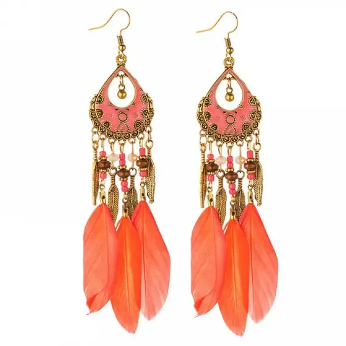 Серьги Капля с перьями, цвет оранжевый SE028-2