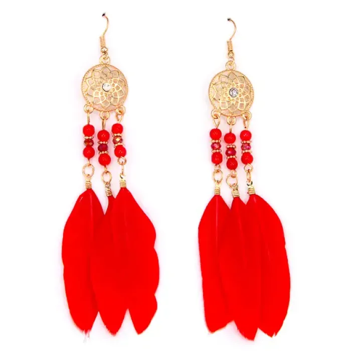 Красные серьги с перьями 10 см SE035-3