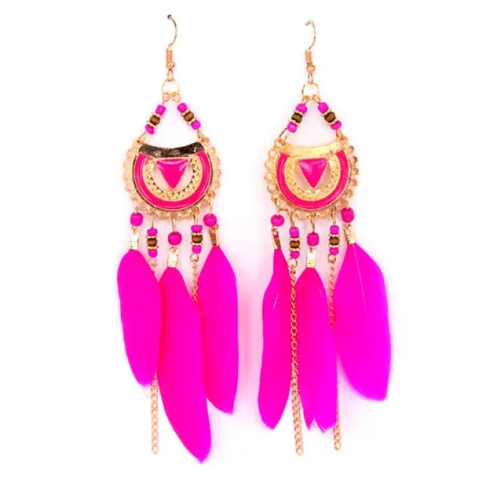 Серьги-сувенир в стиле «ловец снов» из металла и перьев. Длина 11 см.