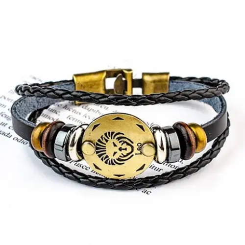 Кожаный браслет с застежкой Знаки Зодиака - Лев BS313-06
