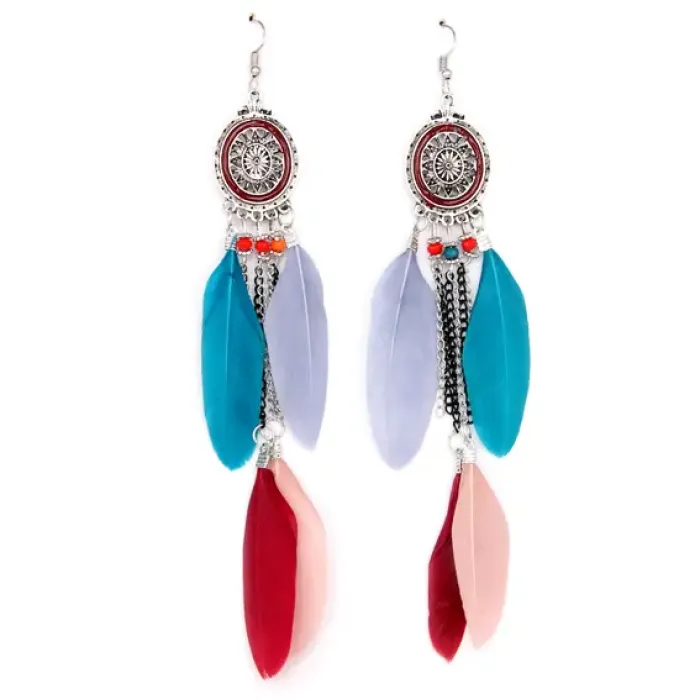 Цветные серьги с перьями SE101-1 — это стильный аксессуар, вдохновленный культурой Ловцов снов. Эти украшения не только привлекают внимание яркими оттенками, но и символизируют защиту от негативной энергии. Изготовленные из легких материалов, они обеспечивают комфорт при ношении и идеально подходят для любого повода.