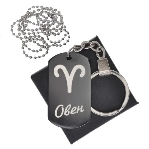 Размеры и комплектация: Размер 49х28 мм. В комплекте кольцо для ключей и регулируемая шариковая цепочка. Упаковка: коробка.