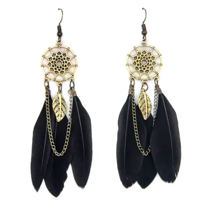Серьги Ловец снов с перьями, цвет черный SE104-3