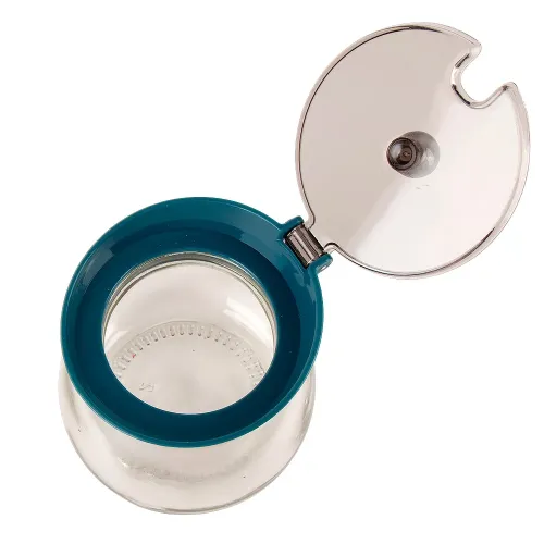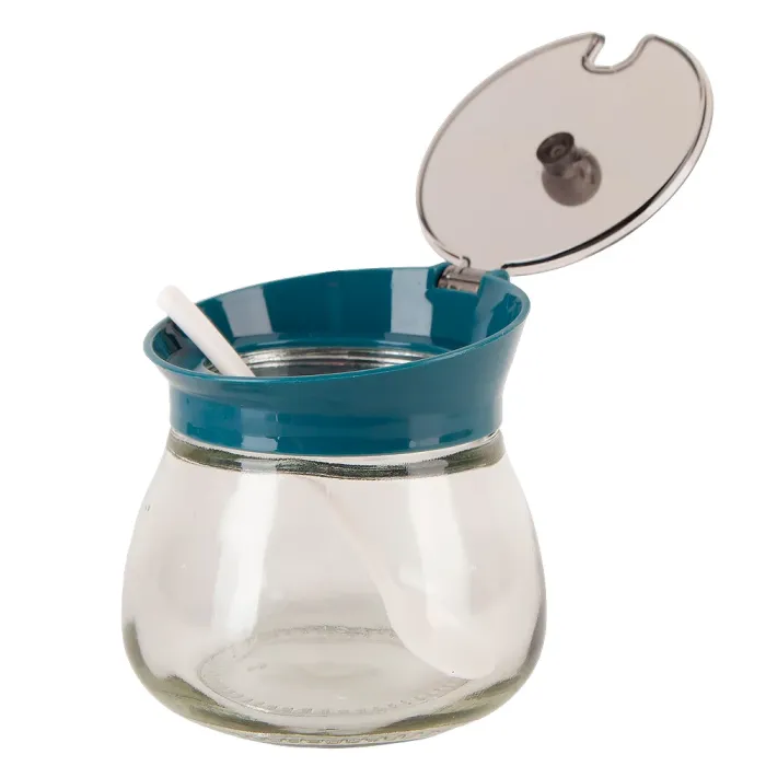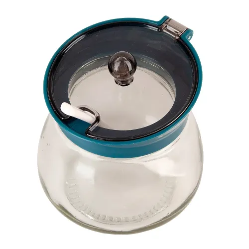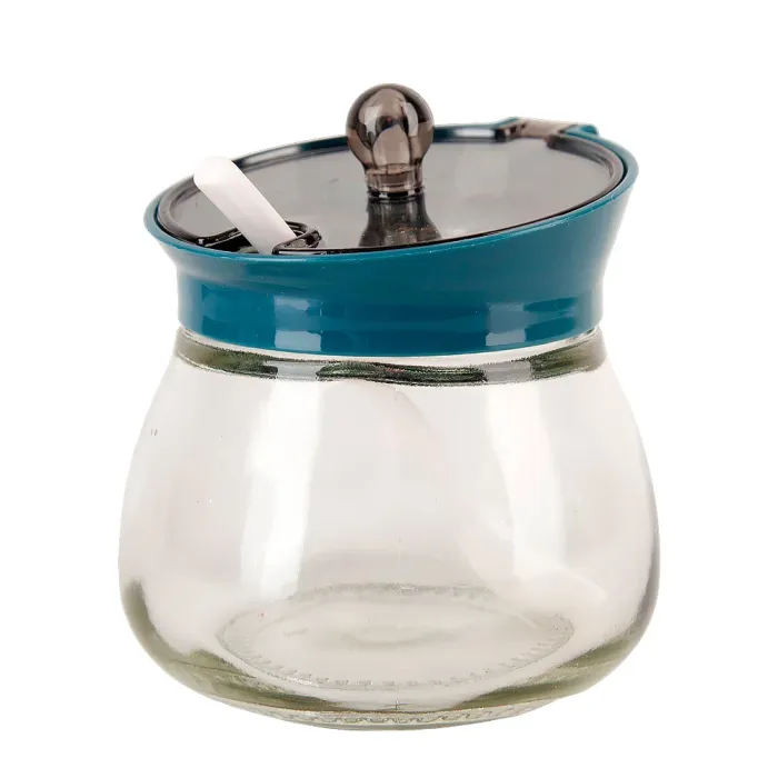 Основной корпус емкости выполнен из прозрачного стекла, что позволяет визуально контролировать количество содержимого. Крышка и ложка изготовлены из полипропилена. Фигурная форма корпуса является элементом дизайна. В комплект входит ложка для удобного дозирования.