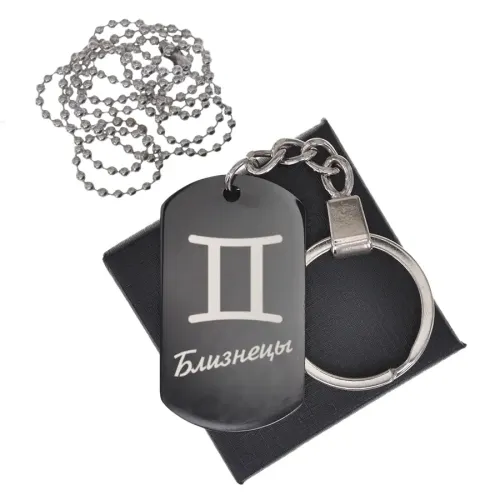 Размеры и комплектация: Размер 49х28 мм. В комплекте кольцо для ключей, шариковая цепочка и подарочная коробка.